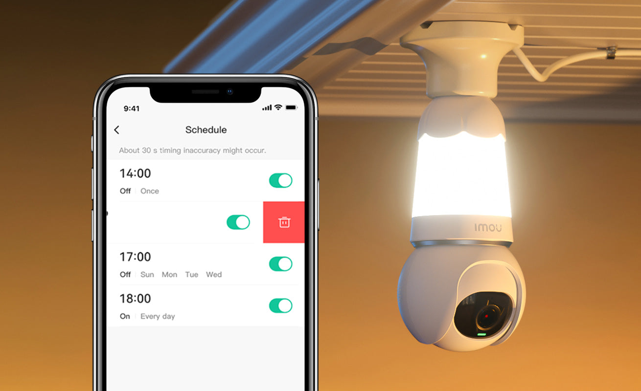 Die meisten Glühbirne-Sockel-Kameras können nur als Spotlicht leuchten, wenn verdächtige Anzeichen erkannt werden. Jedoch kann die IMOU Glühbirne-Sockel-Kamera als [intelligente Verandaleuchte] verwendet werden. Sie können sie dazu einrichten: