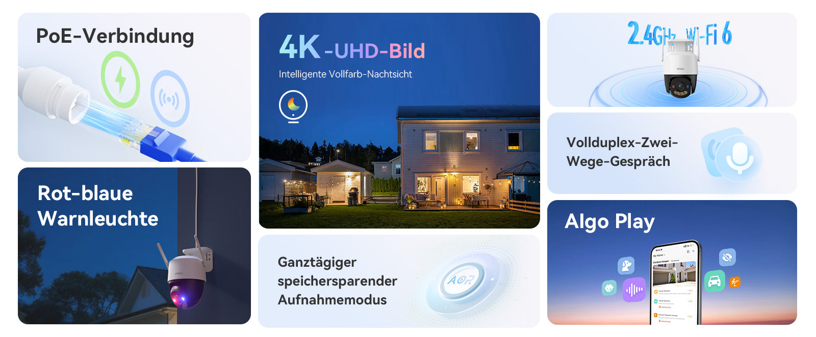 Sie können die Algorithmen, die Sie möchten, über Algo Play auswählen und herunterladen, um das IMOU-Produkt genau auf Ihre Bedürfnisse in verschiedenen Szenarien anzupassen, sodass Ihre Kamera kontinuierlich lernen und sich weiterentwickeln kann.
