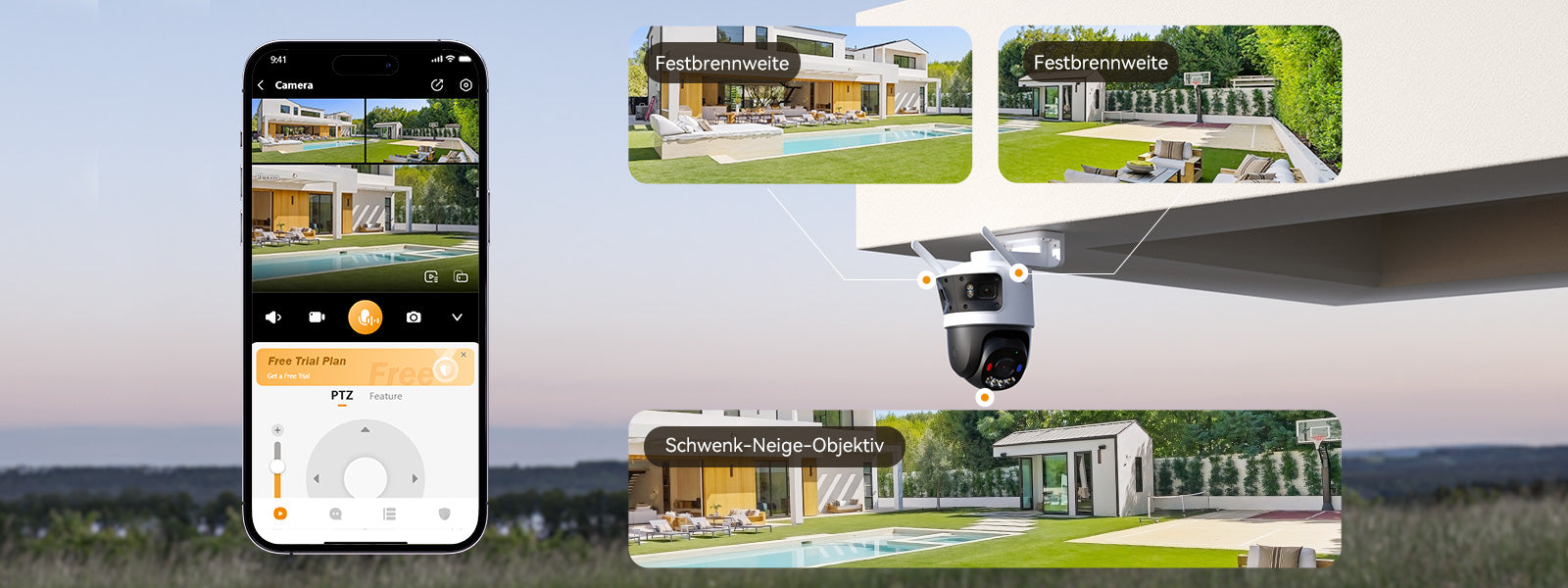 Eliminieren Sie jeden toten Winkel mit dem Cruiser Triple — einer 360°-Rundumüberwachungskraft. Durch die Kombination einer 3+3MP-Dualwinkel-Festbrennweite für weite 160°-Abdeckung mit einer 5MP-Schwenk-Neige-Objektiv, die mit 360°-Rotation patrouilliert, sorgt dieses einzigartige Drei-Objektiv-System für unvergleichliche Klarheit. Während die beiden Festbrennweiten Ihren Perimeter verankern, verfolgt die dritte aktive Linse die Details und liefert eine reichere Perspektive für die Rundumsicherung Ihres Zuhauses.