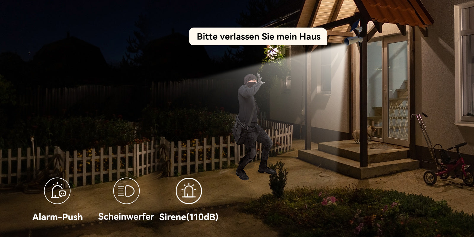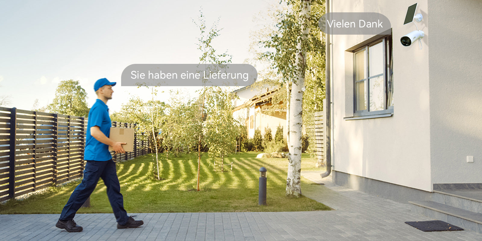 Cell 3C ist mit präziser PIR- und KI-Human-Detection-Technologie ausgestattet, die sicherstellt, dass keine Bewegung unbemerkt bleibt. Wenn eine Lieferperson oder jede menschliche Aktivität innerhalb des Überwachungsbereichs erkannt wird, sendet die Kamera sofort einen Alarm aus, der es Ihnen ermöglicht, jeden wichtigen Moment der Lieferung oder des Erscheinens festzuhalten.