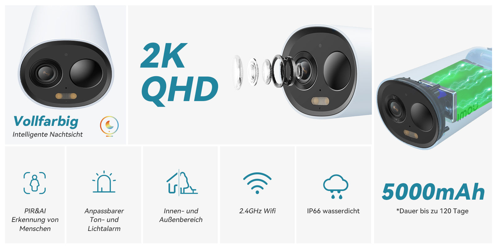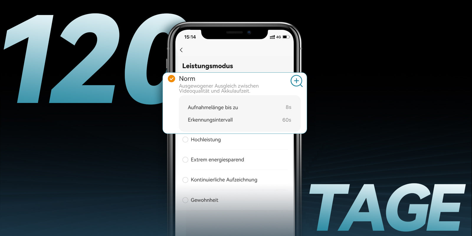 ¹ Die Batterielebensdauer von 120 Tagen basiert auf 20 Videos à 15 Sekunden pro Tag, und die tatsächliche Batterielebensdauer kann davon abweichen.