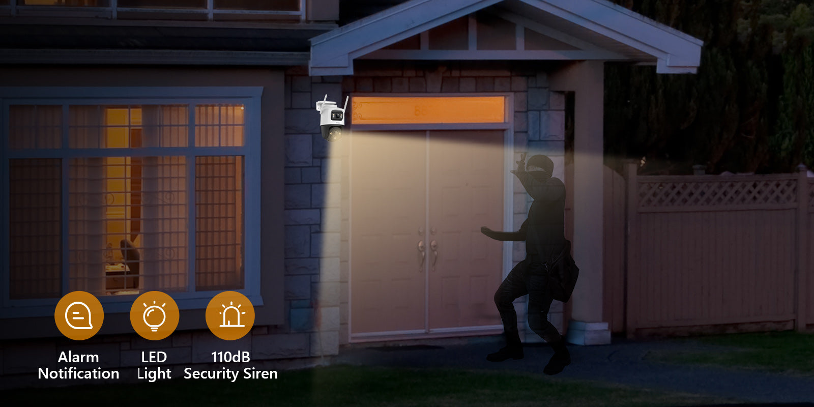 You can precisely define monitoring areas to reduce false alarms and set different alarm schedules for different times. For example, you can set the front yard monitoring to activate only at night or focus solely on specific areas like the garage entrance.