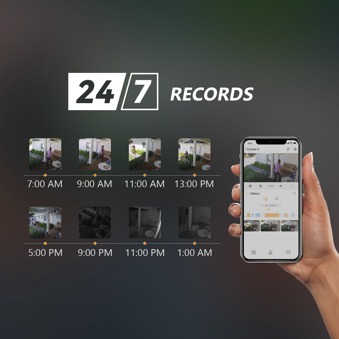 Cruiser Dual admite grabación continua las 24 horas del día, los 7 días de la semana para no perderse nada.
