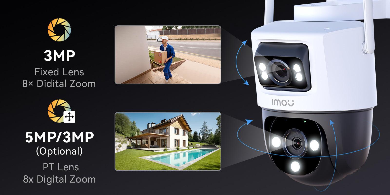 3MP es más claro que 1080P. 5MP (opcional) Pan & La lente inclinable permite una visión más clara de los posibles puntos de riesgo. Amplía la imagen sin perder detalle.