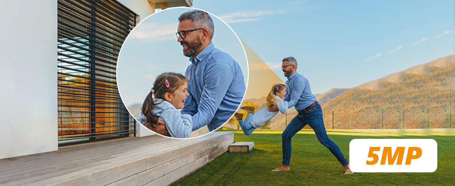 Una mayor densidad de píxeles significa capturar más luz en cada píxel. Esto hace que la imagen se vea más detallada y vibrante, para que no se pierda ningún detalle. Además, es compatible con zoom digital de 8x para permitirle ver a mayor distancia. Como resultado, las imágenes de las cámaras de seguridad de 5 MP son mucho más nítidas que las de las cámaras de seguridad de 1080p.