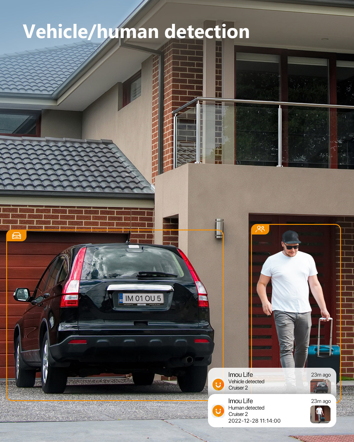 Impulsada por el algoritmo IMOU Sense AI, la cámara de seguridad puede detectar de inmediato personas, vehículos, animales, paquetes, etc., con mayor precisión y enviar alertas más relevantes.