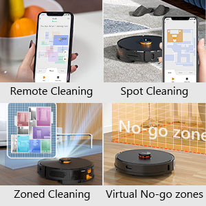 Puedes gestionar fácilmente tu aspiradora inteligente con nuestra app. Con ella, puedes crear un plano detallado, adaptar el método de limpieza a tus preferencias y configurar zonas restringidas fácilmente.