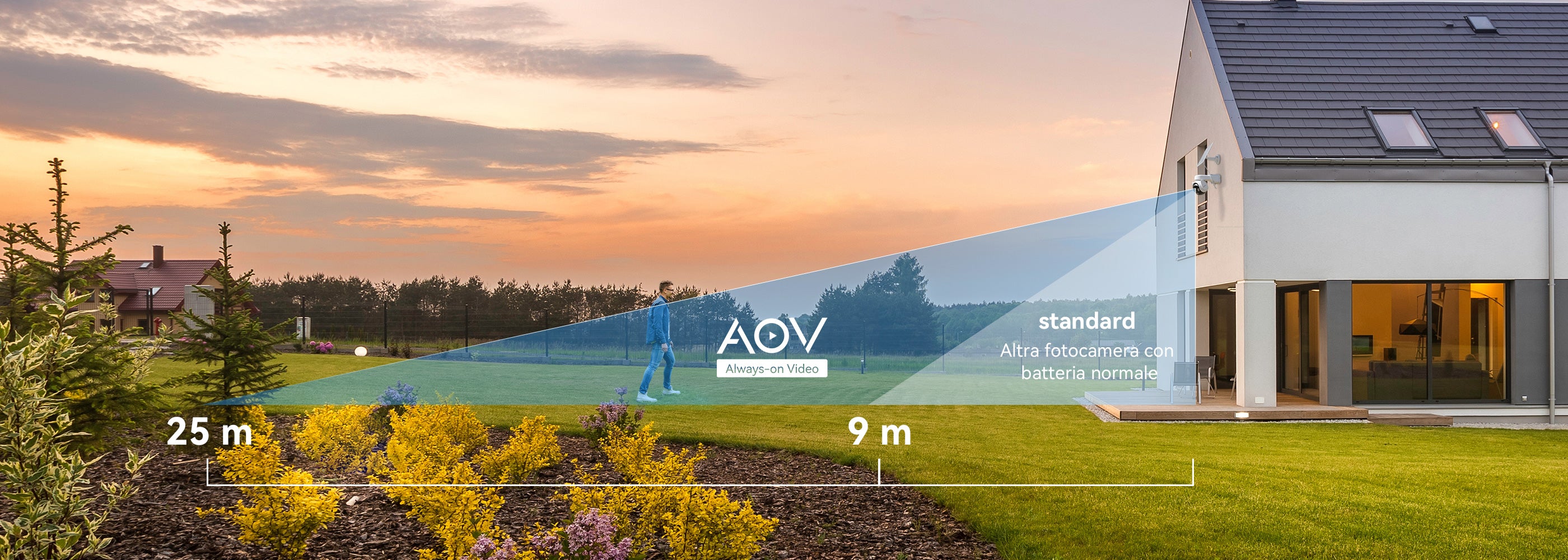 Basata sulla tecnologia AOV, la AOV PT ha un raggio di rilevamento molto più ampio rispetto alle normali telecamere a batteria, fino a 25 metri, senza falsi rilevamenti dovuti a imprecisioni PlR.