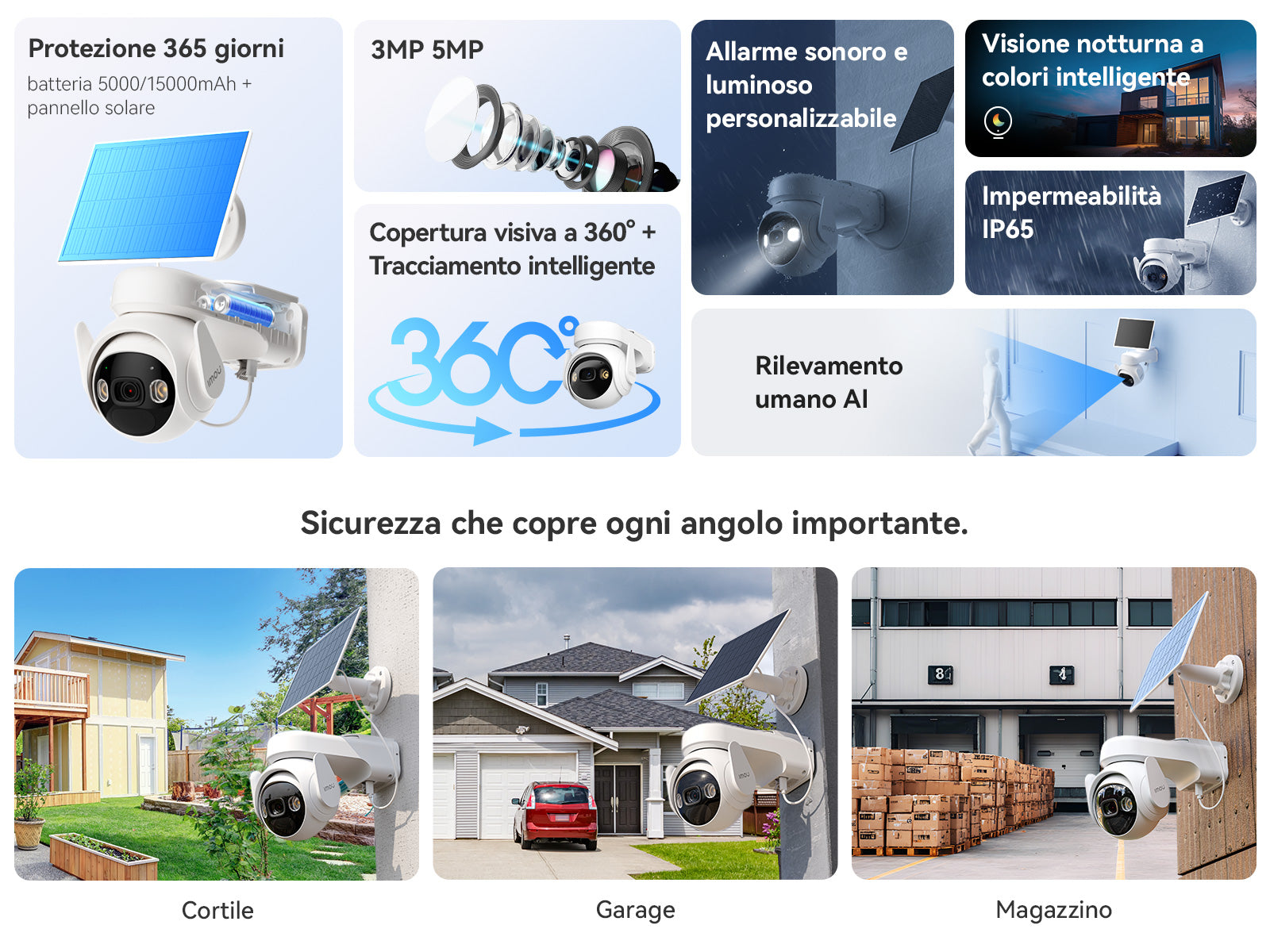 Dissuade gli intrusi con suoni e luci potenti, mantenendo al contempo una comunicazione in tempo reale quando si avvicinano degli estranei.