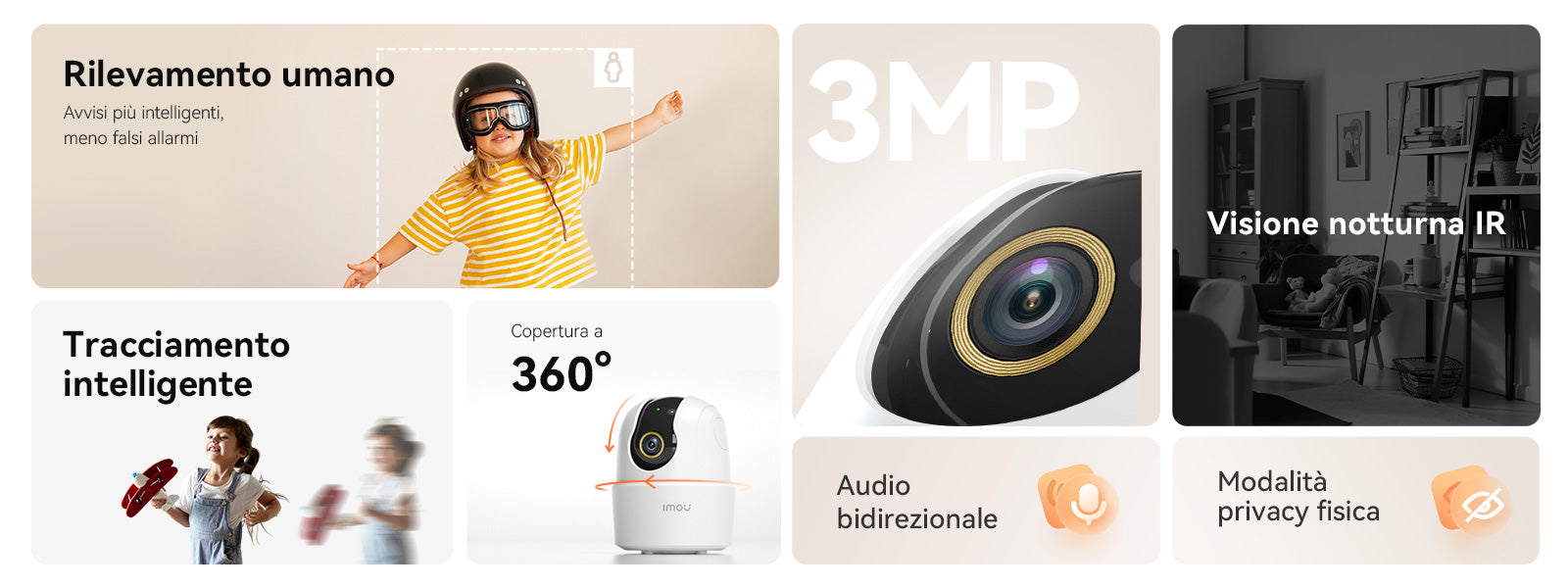 La telecamera di sicurezza, insieme all'app Imoulife, ti garantirà una protezione completa della tua casa.