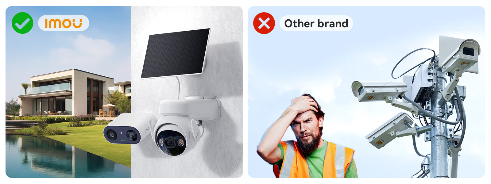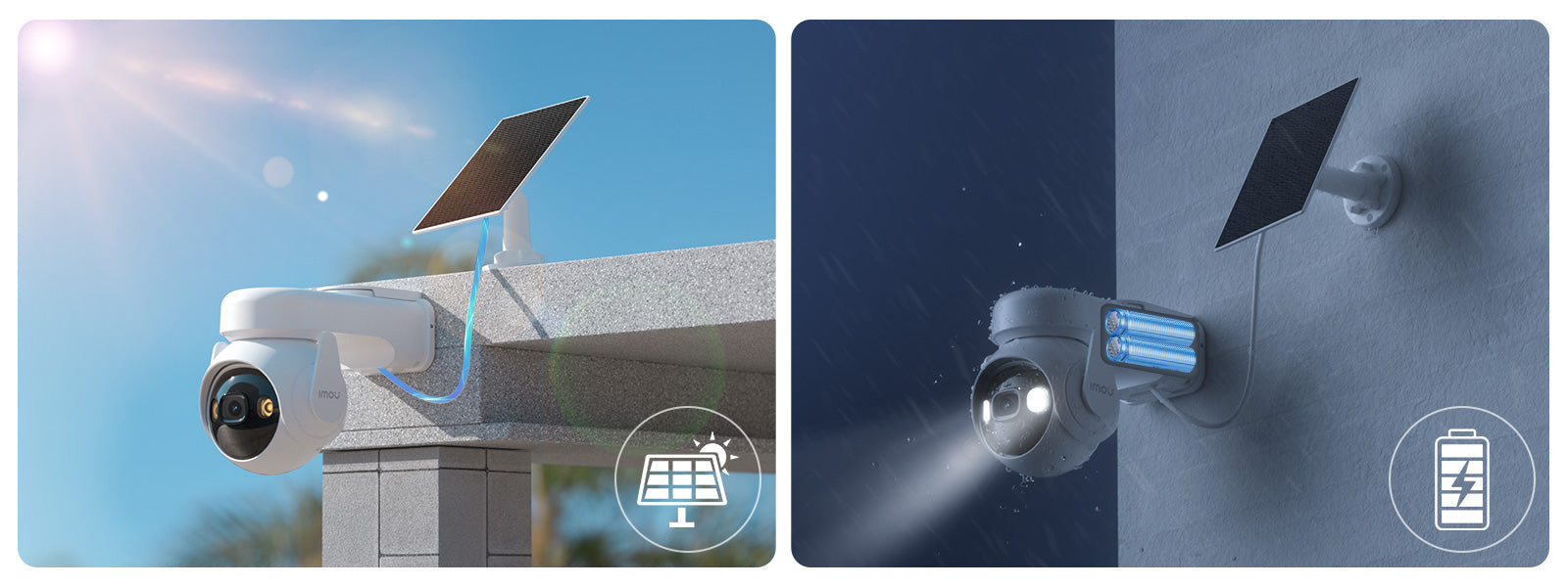 Liberatevi dai vincoli e liberate lo spazio. Questi due [solare/a batteria] Le telecamere offrono una praticità senza precedenti grazie al loro design senza cavi né fori. Non importa dove desideri installare il monitoraggio, non devi preoccuparti della distanza dalla presa di corrente. Basta scegliere una posizione adatta, posizionarla delicatamente e iniziare subito a monitorare.
