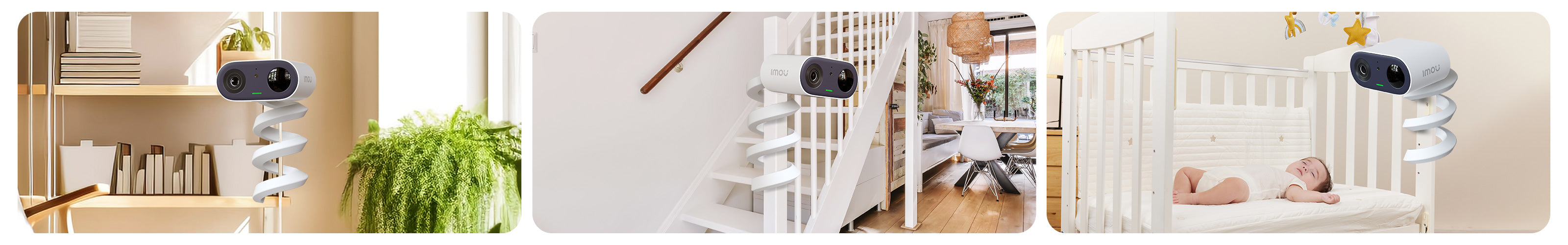 Questa fotocamera [Nessun cablaggio richiesto] E [Dimensione del palmo] Il design innovativo consente di posizionare facilmente la telecamera in qualsiasi ambiente in cui si desideri monitorare o registrare. Utilizzatela con un supporto flessibile e godetevi la libertà di ruotare il dispositivo di 360°.