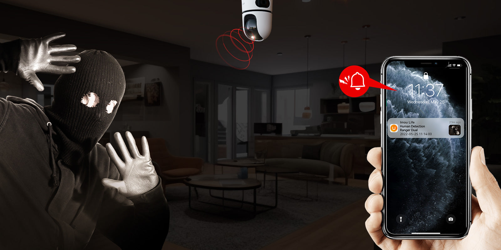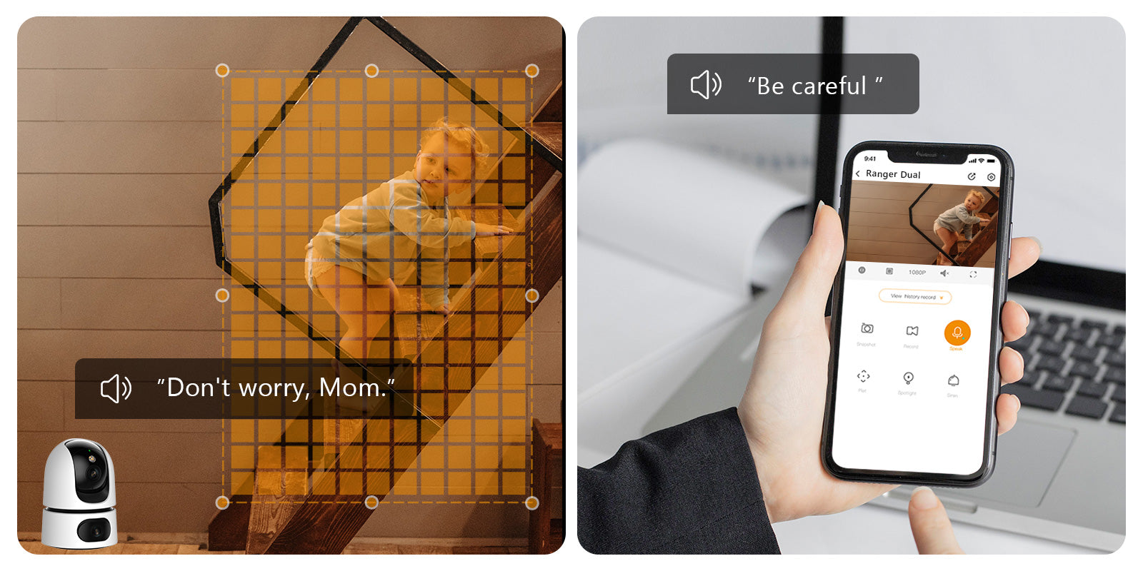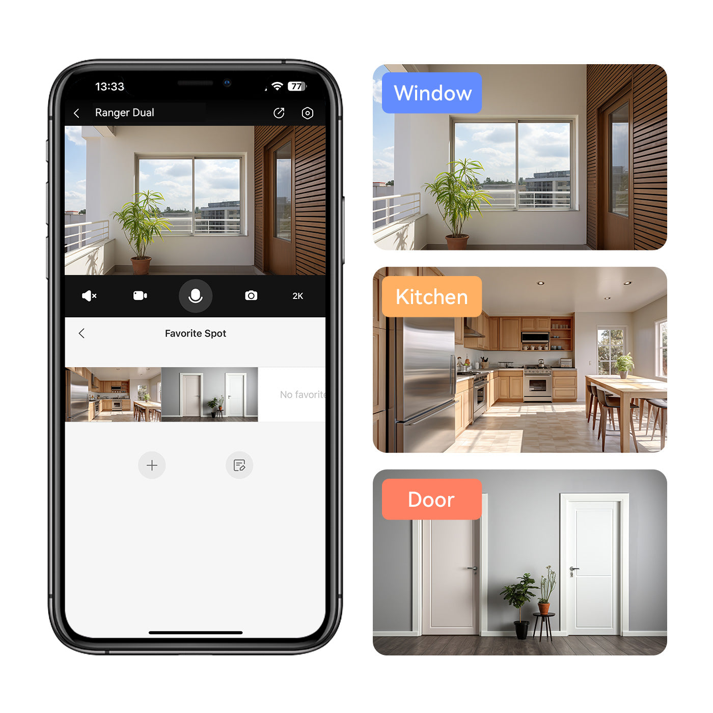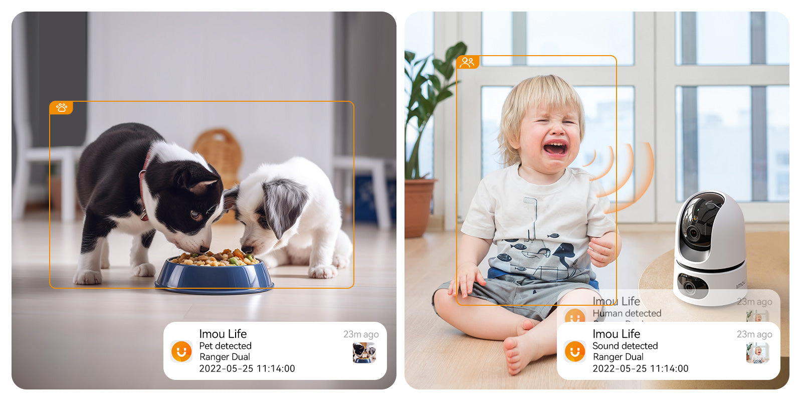 Ranger Dual è in grado di individuare rapidamente bersagli umani/animali domestici nelle immagini e di inviare immediatamente una notifica al tuo smartphone. Per gli amanti degli animali, Ranger Dual può monitorare costantemente l'area di alimentazione. Non appena il tuo cane viene rilevato in avvicinamento, il nostro sistema invierà immediatamente una notifica al tuo cellulare. Inoltre, Ranger Dual può anche inviare una notifica quando rileva suoni anomali, come il pianto di un bambino.
