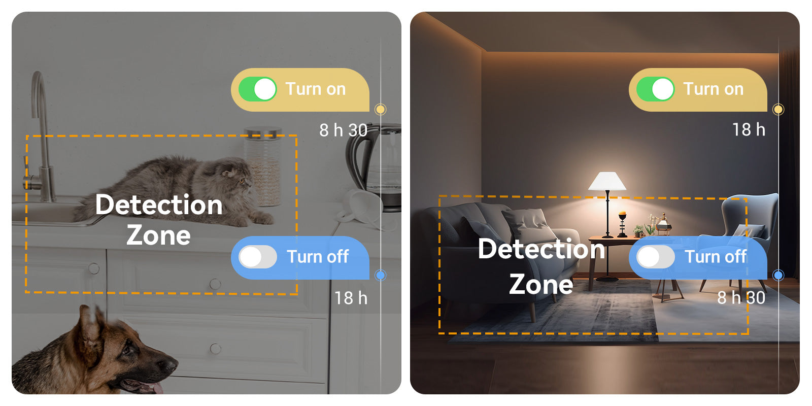 Tieni d'occhio i tuoi animali domestici durante il giorno quando sei fuori e concentrati sul monitoraggio della porta di notte quando dormi. Personalizza la zona di rilevamento e la programmazione degli allarmi per un monitoraggio e delle notifiche precisi.