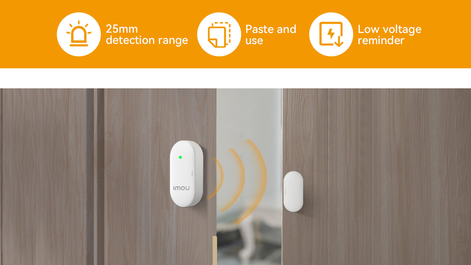 Quando sei lontano da casa, garantire la sicurezza della proprietà IMOU è fondamentale. Il sensore per porte e finestre IMOU ti offre tranquillità monitorando lo stato di porte, finestre, ante e cassetti. Nel caso in cui uno di questi venga lasciato aperto, il sensore ti avviserà immediatamente inviando un messaggio di allarme all'app mobile IMOU tramite il gateway. Inoltre, può essere integrato perfettamente con una telecamera IMOU per catturare e registrare eventuali movimenti anomali di porte o finestre.