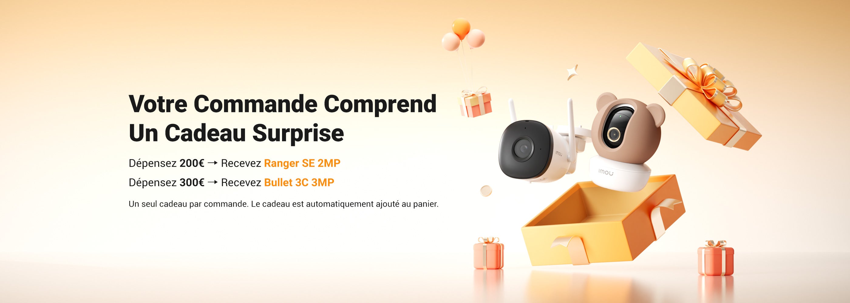 Pendant la période de promotion, les clients qui effectuent un achat sur la boutique officielle IMOU et atteignent les montants suivants recevront un cadeau gratuit :
