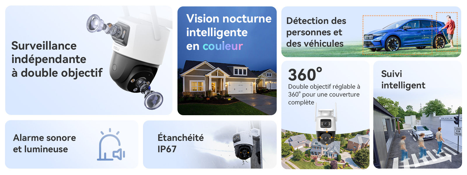 Prise en charge de la détection et du filtrage des personnes, des véhicules, des animaux domestiques et des colis. Vous pouvez programmer la réception d'une notification pour les informations que vous souhaitez afin de réduire les perturbations.