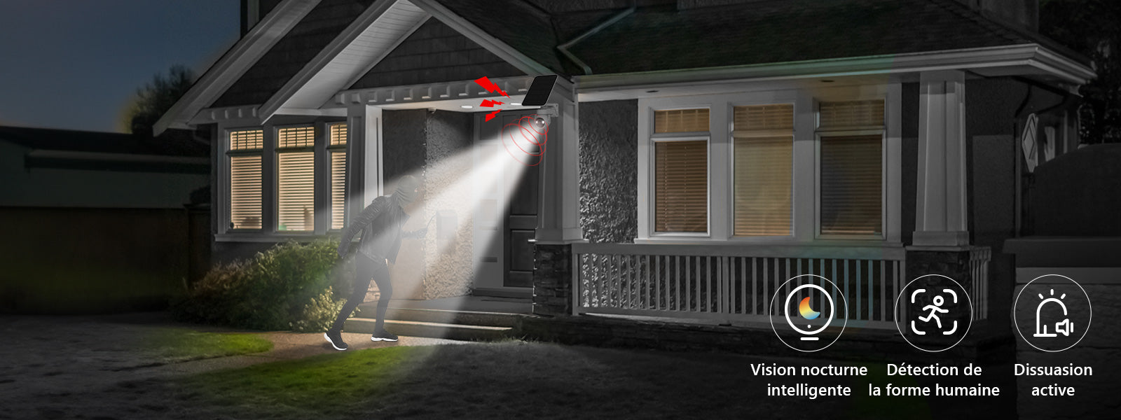 Rien ne perturbe plus la tranquillité d’esprit que la menace d’une entrée non autorisée. Mais maintenant, avec cette caméra, vous pouvez être tranquille en sachant que votre maison est sous surveillance vigilante. La [vision nocturne intelligente] perce, fournissant des visuels clairs de tout mouvement, garantissant qu'aucun coin de votre propriété n'est laissé sans surveillance. Lorsque la [détection humaine] détecte une présence inhabituelle, le mécanisme de [dissuasion active] se déclenche, émettant un puissant avertissement et des lumières clignotantes conçues pour dissuader efficacement tout intrus potentiel.