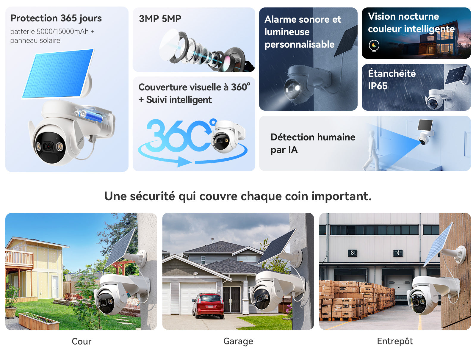 Couverture complète à 360 degrés, la technologie intelligente de suivi automatique vous permet de ne jamais manquer un coin de rue.