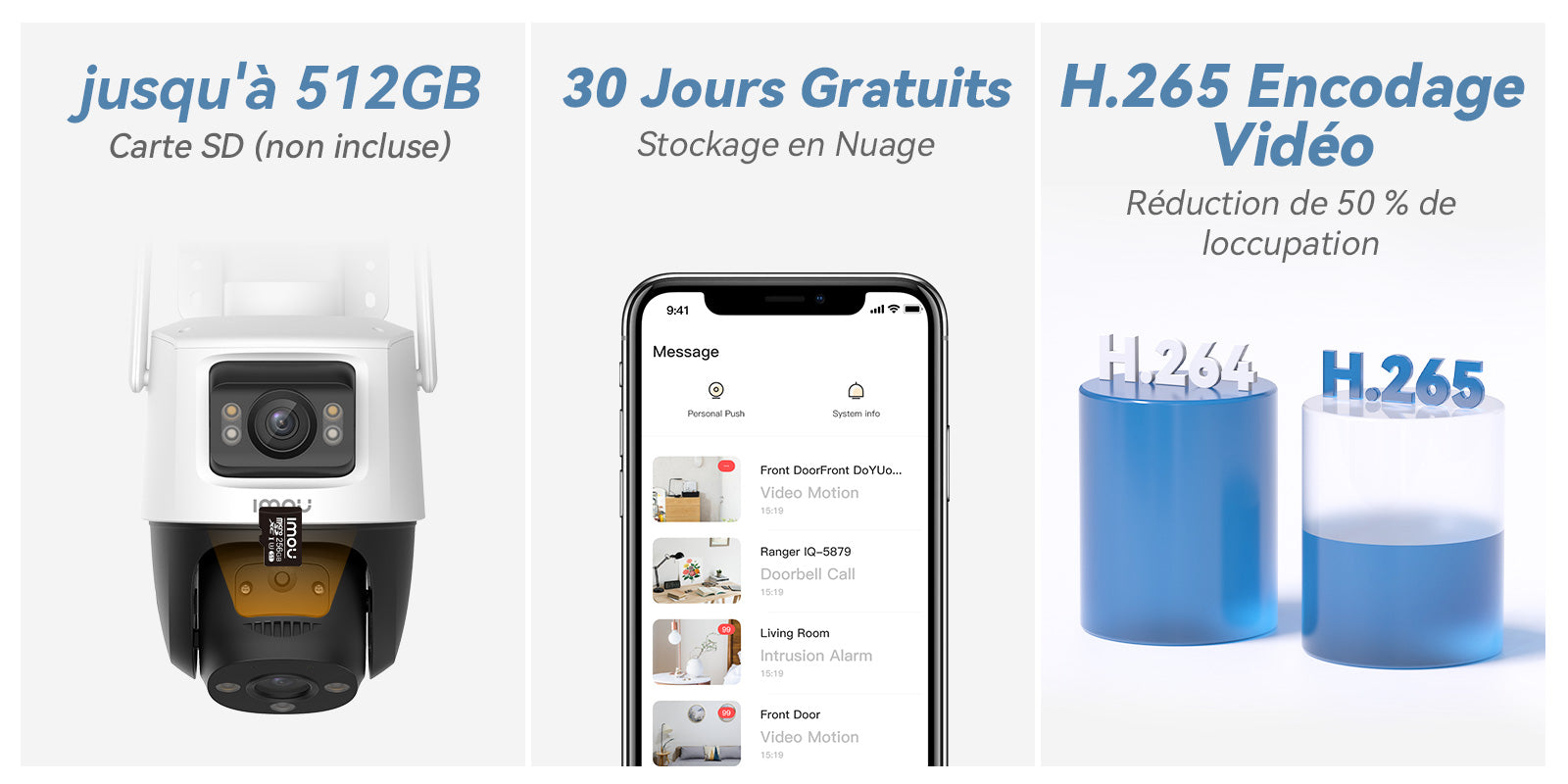 - Stockage en nuage gratuit pendant 30 jours & Pas d'abonnement obligatoire