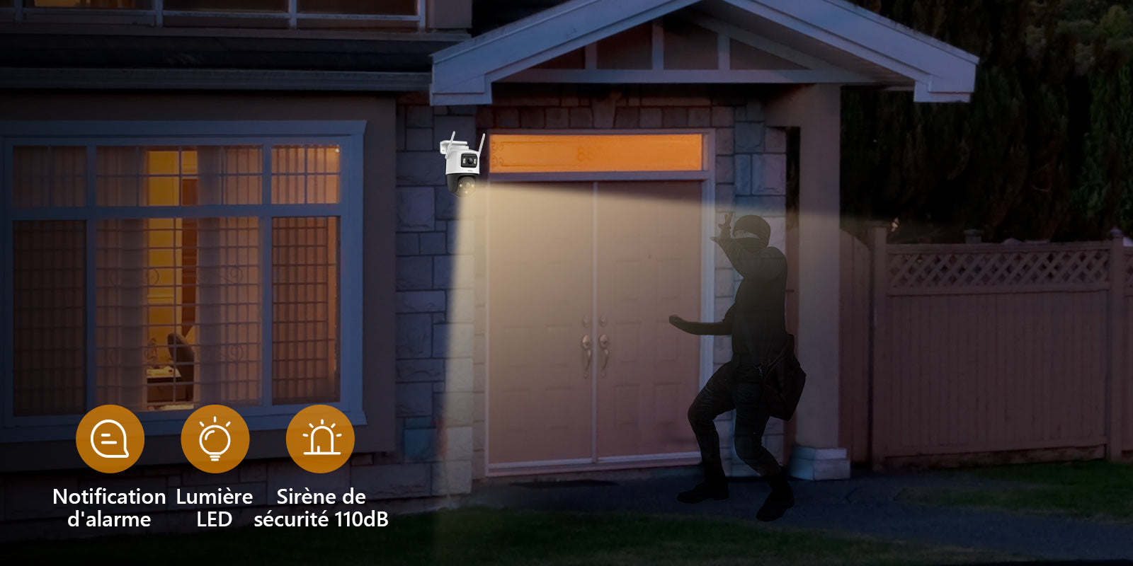 Dissuasion forte grâce à une alarme et un projecteur personnalisés