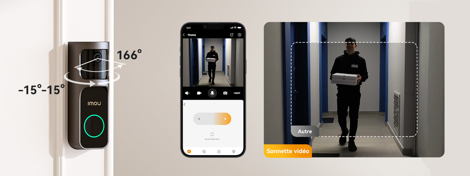 Avec la sonnette vidéo, vous pouvez voir et communiquer avec les visiteurs à votre porte à tout moment, n'importe où. Équipée d'une caméra HD 2K 3MP, elle offre un champ de vision diagonal de 166° et un objectif panoramique de 30 pour une visibilité claire. Recevez des notifications en temps réel via l'application IMOU Life pour visualiser les visiteurs et engager une communication audio bidirectionnelle. Cette fonctionnalité est parfaite pour les livraisons de colis ou les visiteurs familiaux, améliorant votre confort et votre sécurité. La fonction de reconnaissance des visiteurs offre une perspective de la tête aux pieds, garantissant une vue complète, tandis que la fonction de suivi automatique capture chaque moment important.