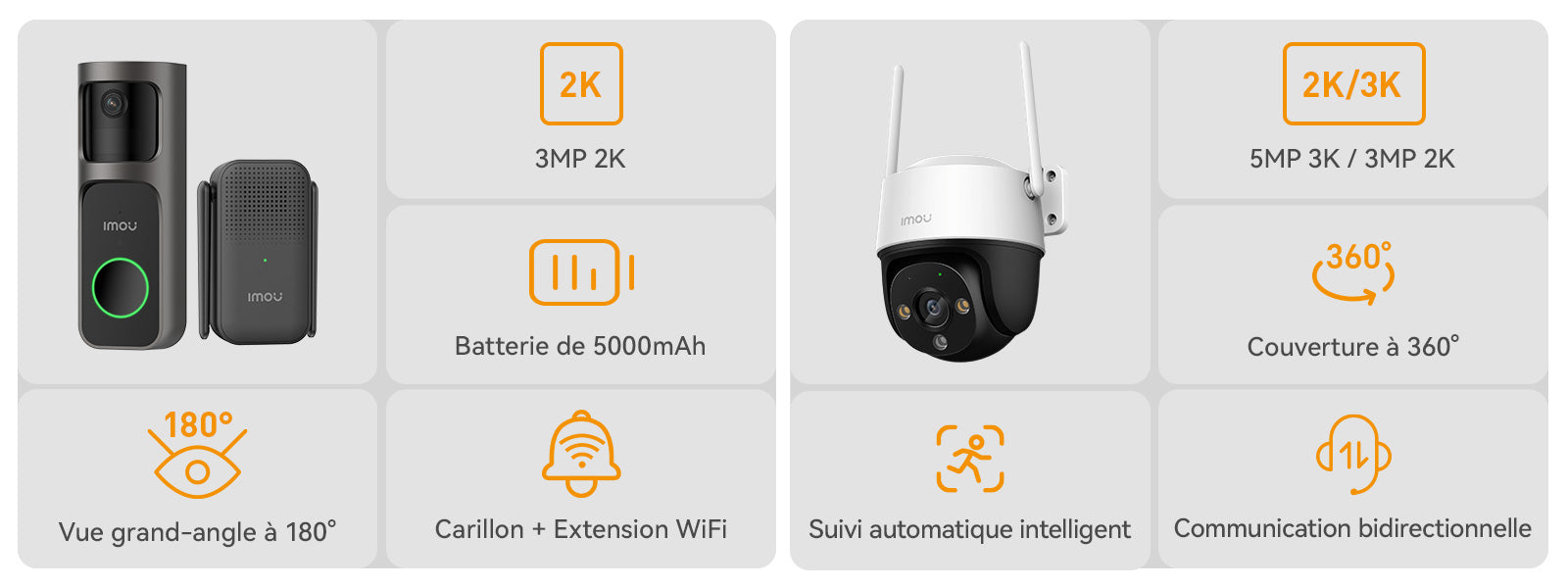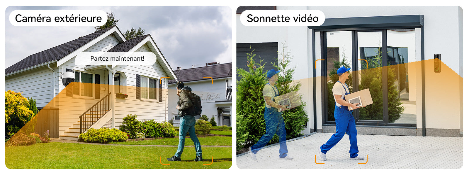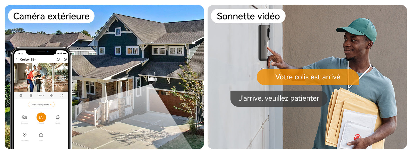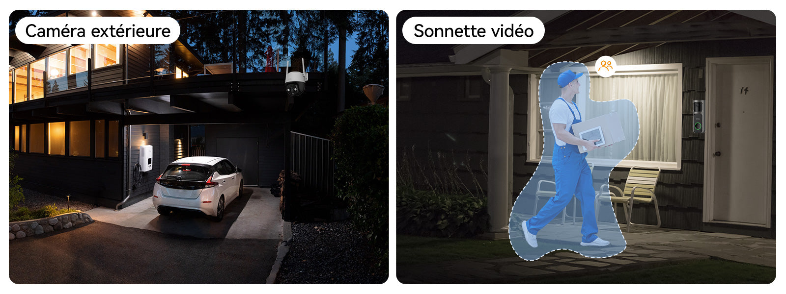 Grâce à la fonction de reconnaissance des visiteurs de la sonnette vidéo et à la surveillance panoramique à 360° de la caméra extérieure, vous bénéficiez d'une protection complète pour votre maison. La sonnette vous permet de ne jamais manquer un visiteur important, tandis que la caméra extérieure protège votre jardin et les environs grâce à un suivi automatique et une surveillance sans angle mort. Ensemble, ils offrent une gestion plus intelligente de la maison, garantissant la sécurité et la tranquillité d'esprit de votre famille.