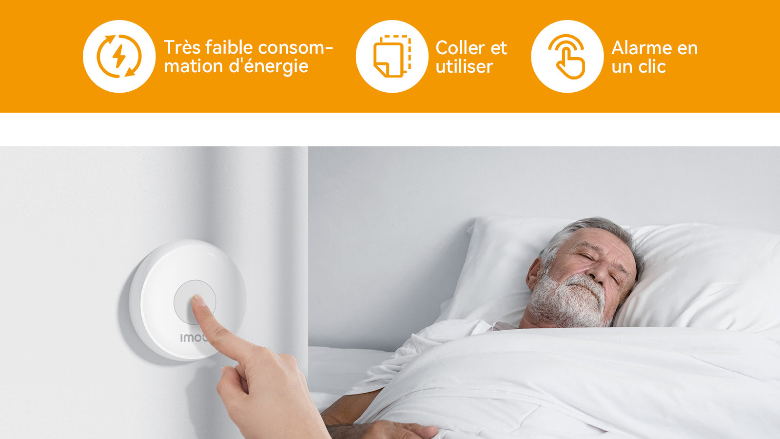 Si la personne âgée est malade, il lui suffit d'appuyer doucement sur le bouton d'urgence IMOU à côté de son lit. L'appareil déclenchera également une alarme de porte d'entrée, perçant la tranquillité et attirant rapidement l'attention des membres de la famille. En outre, il enverra des notifications à l'APP, ce qui permettra aux membres de la famille d'être rapidement informés de la situation.