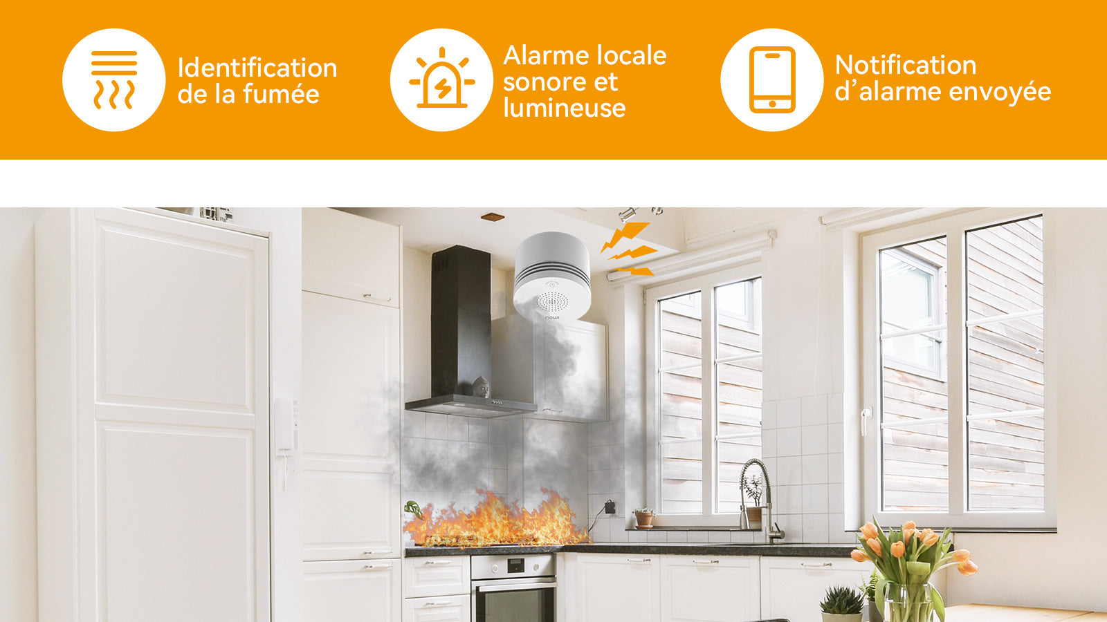 Protégez votre maison en toute confiance. Ce détecteur de fumée intelligent détecte rapidement les dangers cachés grâce à sa technologie de détection optique. Dès qu'il détecte de la fumée, il émet un signal sonore puissant et un flash lumineux, tout en envoyant instantanément des alertes en temps réel sur votre téléphone via la passerelle. Où que vous soyez, vous serez immédiatement averti, garantissant ainsi votre sécurité, votre tranquillité d'esprit et une intervention plus rapide pour protéger ce qui compte le plus.