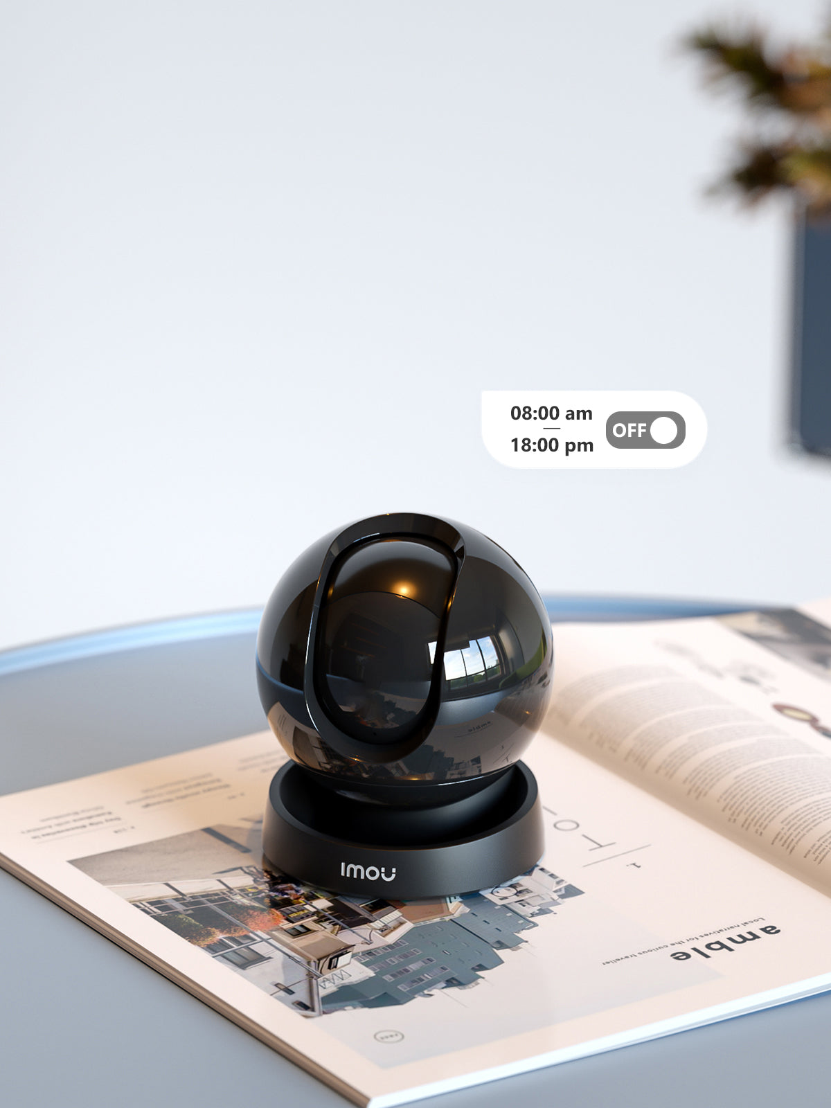 D’un simple clic dans l’application, Rex 3D fermera automatiquement le cache de l’objectif de la caméra pour arrêter l’enregistrement et protéger votre vie privée au domicile.