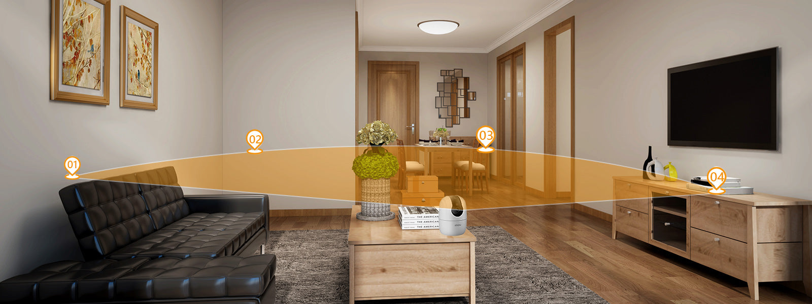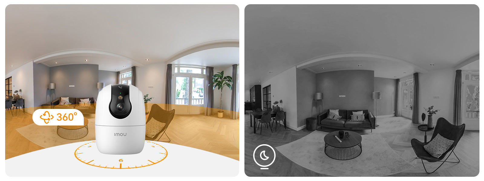 La fonction de navigation automatique permet à votre caméra de sécurité de pivoter en continu et de balayer tous les côtés de votre propriété. Elle offre une couverture complète, même placée au milieu d'une pièce, sans nécessiter de montage en angle.