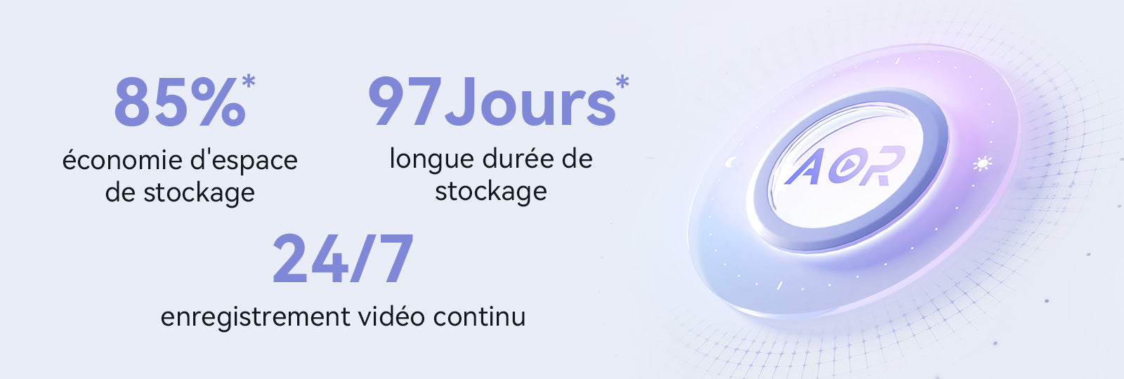 En mode AOR, la caméra enregistre uniquement des vidéos plein cadre lorsqu'un objet suspect est détecté, et 1 image par seconde le reste du temps. Cela répond aux besoins tout au long de la journée et permet d'économiser considérablement de l'espace de stockage, permettant ainsi de conserver davantage de séquences sur une plus petite carte mémoire.