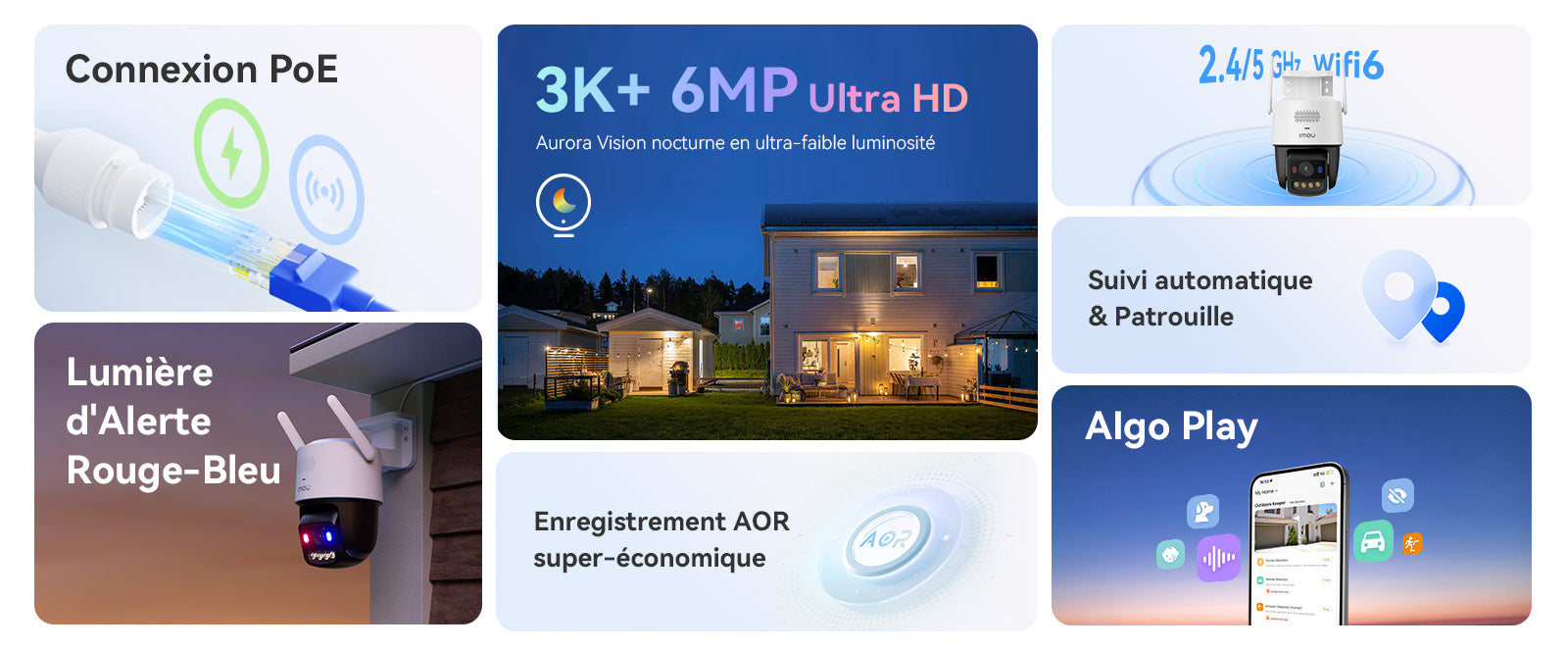 Vous pouvez choisir et télécharger les algorithmes souhaités via Algo Play pour adapter le produit IMOU exactement à vos besoins dans divers scénarios, permettant à votre caméra d’apprendre et d’évoluer en continu.
