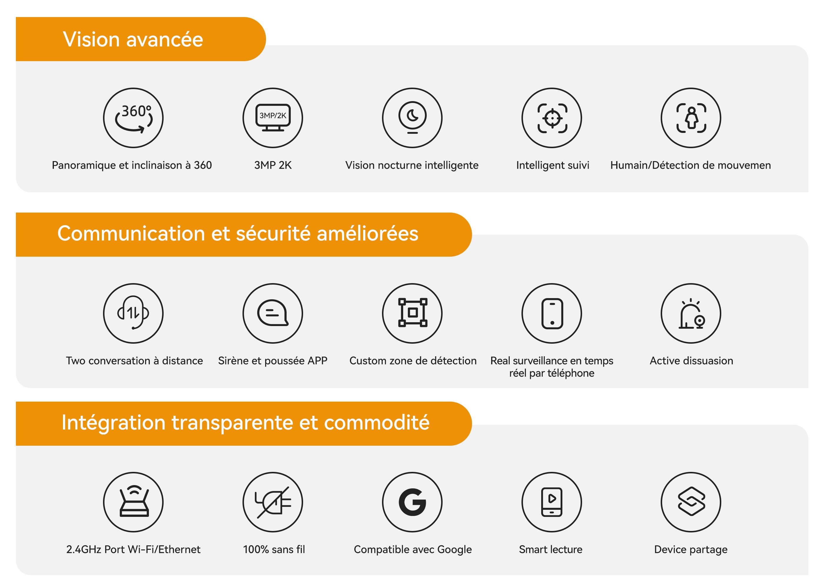 Couverture complète à 360 degrés, la technologie intelligente de suivi automatique vous permet de ne jamais manquer un coin de rue.
