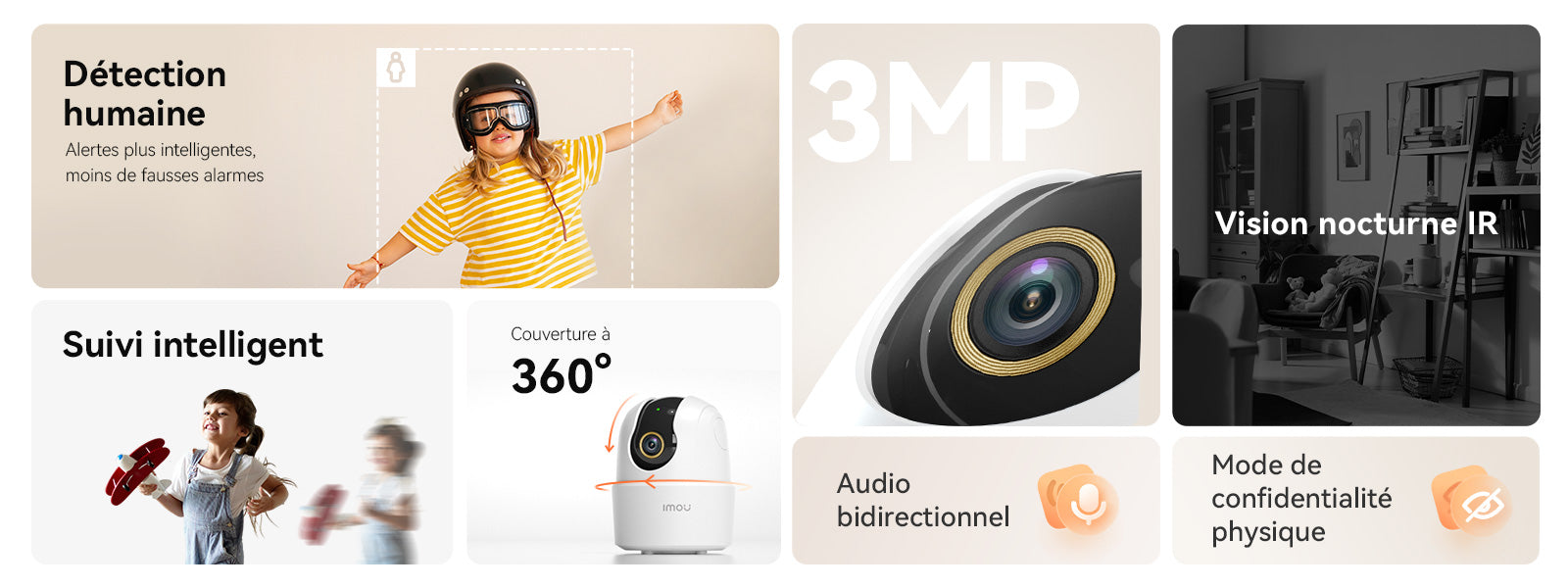 La caméra de sécurité associée à l’application Imou Life vous offriront une protection polyvalente de votre domicile.